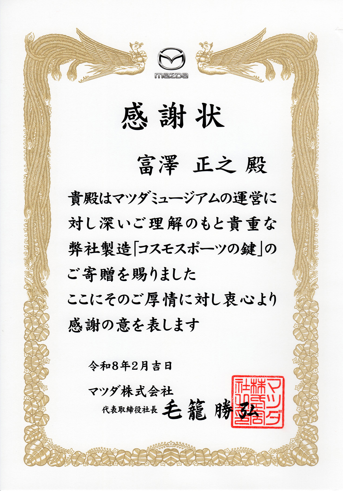 2026年2月、この2本のキーをマツダミュージアムに寄贈しました。