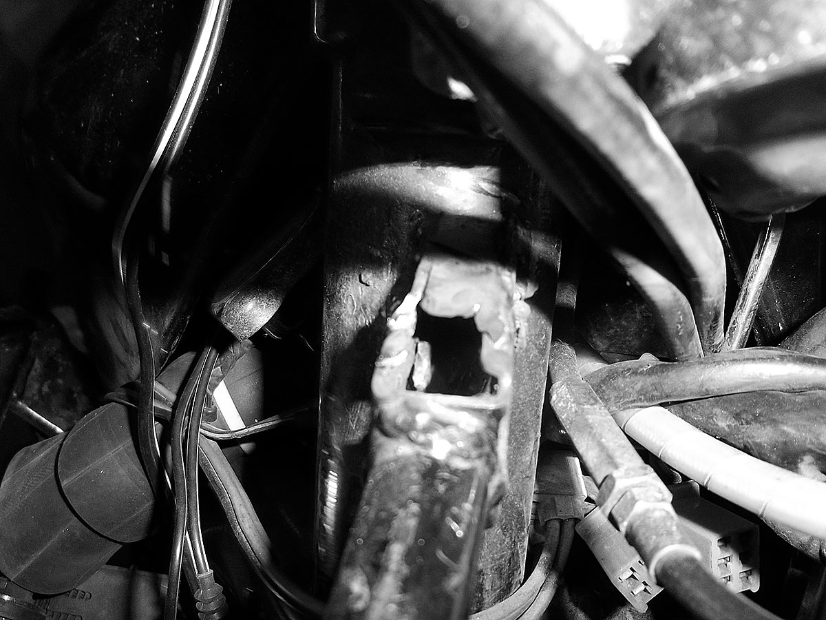 オートバイのアッパーカウルステーにクラック